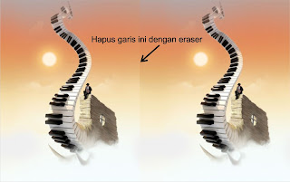 7. Akan terdapat hasil cloningan gambar pertama. Untuk menghilangkan bekas (menyatukan dua gambar), Anda perlu menghapus garis sisa gambar tepi pada layer background copy dengan Eraser Tool.