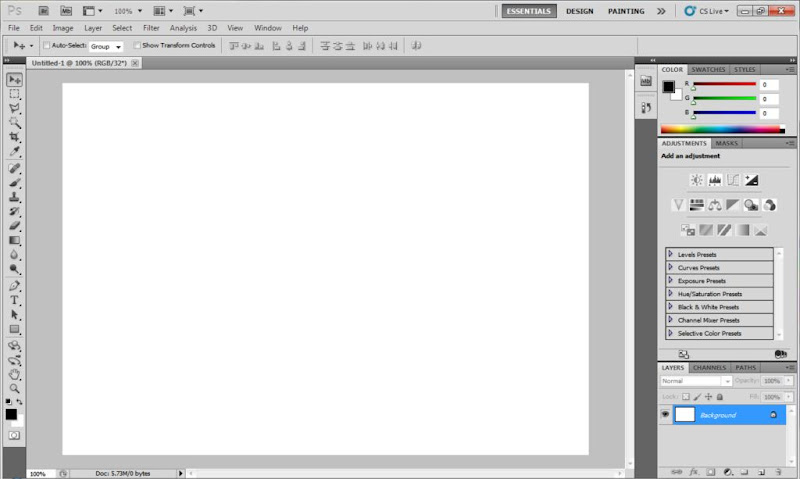 Untuk latihan desain dasar, kita akan mencoba membuat bendera merah putih. Jadi kita disini akan mengenal sedikit demi sedikit mengolah aplikasi Photoshop Cs5.